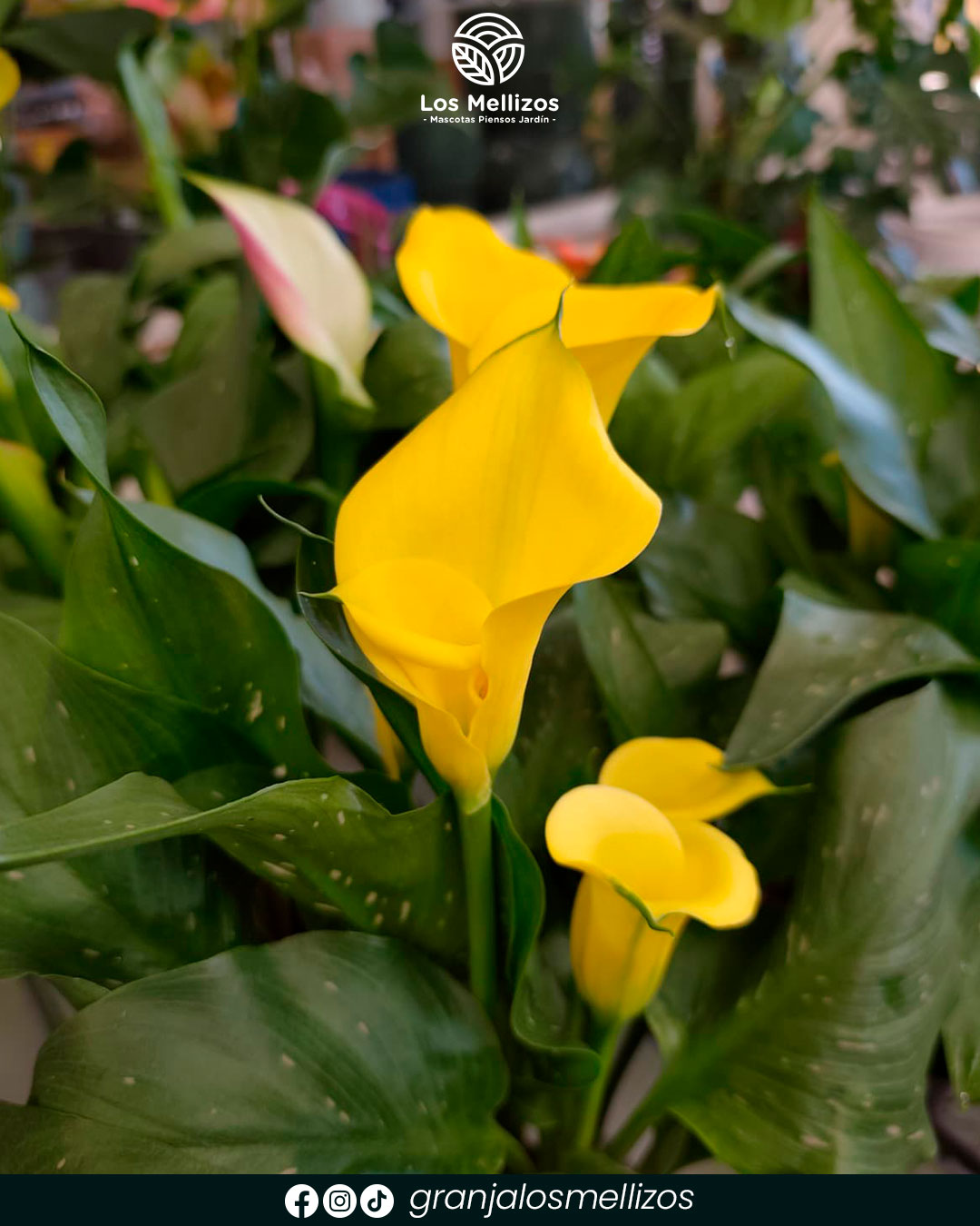 Zantedeschia (conocida como Cala o Lirio de agua): Nos han llegado en unos impresionantes colores amarillo, naranja y púrpura. Anthurium: De un vibrante color rojo que enamora.