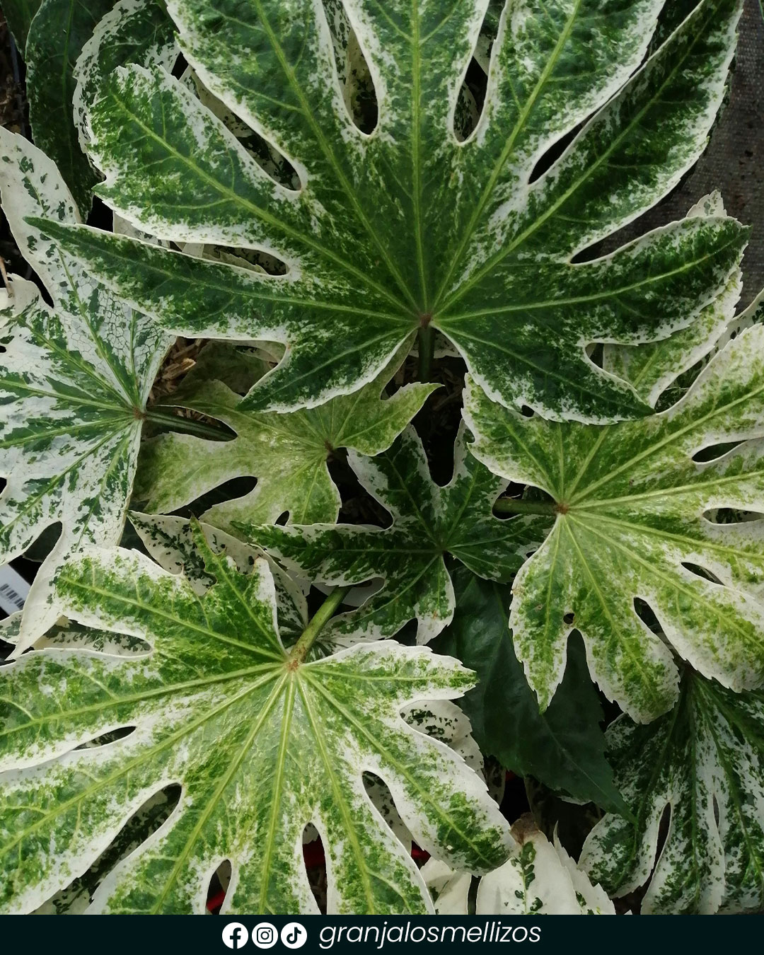 Verde oscuro (especie tipo). ‘Variegata’ (grandes manchas blancas). ‘Camouflage’ (tono amarillo limón). ‘Spider’s Web’ (atractivo moteado crema).